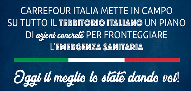 “Siamo un’azienda profondamente radicata su tutto il territorio nazionale, con una presenza capillare, che ci rende un punto di riferimento per moltissimi centri abitati, sia grandi che piccoli, fino a toccare il cuore di molti quartieri. – dichiara Gérard Lavinay, Amministratore delegato di Carrefour Italia - Per questo motivo, sin dall’inizio dell’emergenza, abbiamo sentito in maniera molto forte il dovere e la responsabilità, grazie anche all’impegno dei nostri collaboratori dei punti vendita sia diretti che franchising a cui va un sentito ringraziamento, di metterci al servizio delle comunità in cui operiamo. Attraverso le nostre numerose iniziative e i fondi messi a disposizione, desideriamo contribuire attivamente a rendere maggiormente sostenibile questo difficile momento per tutto il Paese. Continueremo ad impegnarci per stare accanto ai nostri collaboratori, a tutti i nostri clienti e alle loro famiglie, garantendo loro un servizio essenziale e importante nella maniera più efficiente e sicura possibile, e allo stesso tempo tendendo una mano, ove per noi possibile, a tutte le persone straordinarie che tra i medici, paramedici e i volontari, in questo tragico momento, stanno offrendo a questo Paese una prova di grande solidarietà. Anche a loro – conclude Lavinay – va la nostra più grata riconoscenza.”