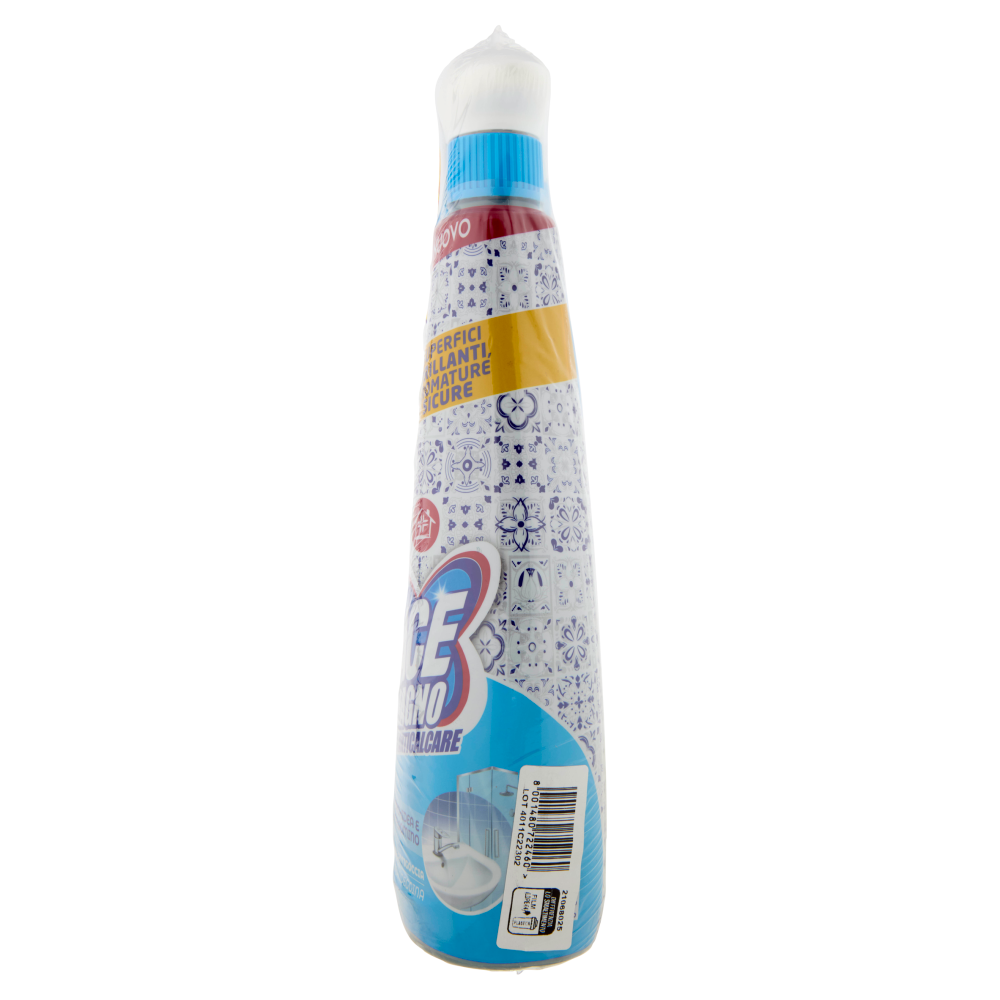 Modalità d'uso Spruzzare il prodotto sulla superficie, lasciare agire qualche secondo e risciacquare abbondantemente con acqua. Per le incrostazioni più difficili: lasciare agire al massimo 5 minuti prima di risciacquare. Consigli per un uso sicuro: Non mescolare con candeggina o altri detergenti. Non utilizzare su superfici calde o danneggiate, apparecchiature elettriche ed elettroniche. Non utilizzare su marmo e pietre naturali, ottone, rame, alluminio, bronzo, zinco, argento, oro, gomma, linoleum, vetri satinati, superfici smaltate o verniciate. In caso di dubbio, provare prima su un'area nascosta.