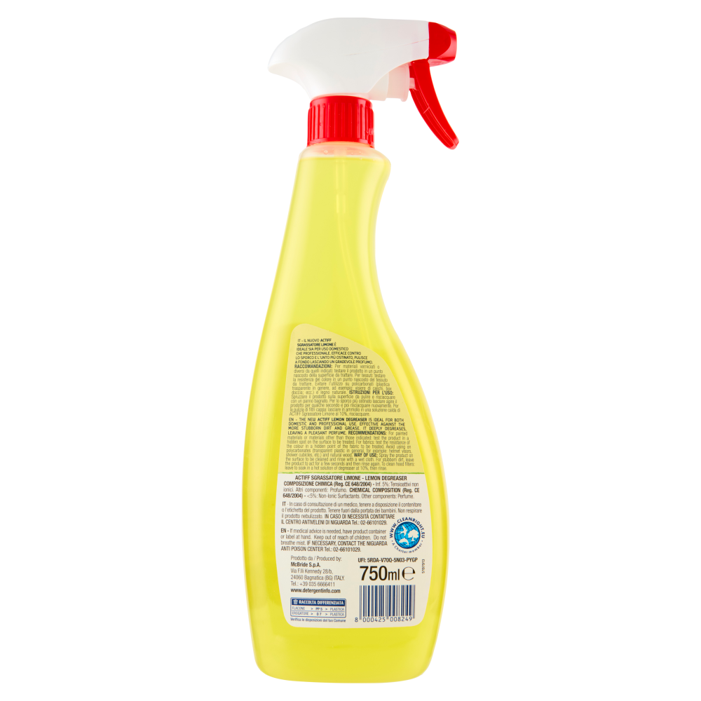 Il nuovo Actiff sgrassatore limone è ideale sia per uso domestico che professionale. Efficace contro lo sporco e l'unto più ostinato, pulisce a fondo lasciando un gradevole profumo.