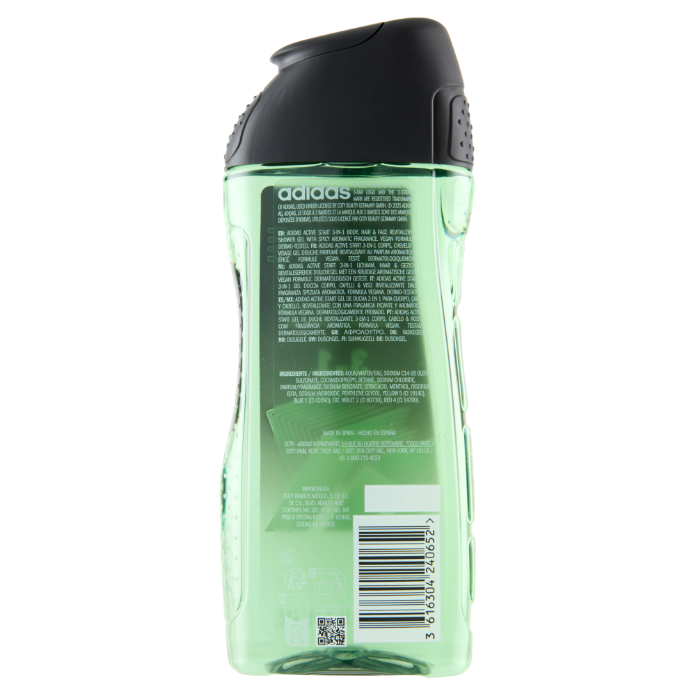 Adidas active start 3-in-1 gel doccia corpo, capelli & viso rivitalizzante dalla fragranza speziata aromatica. Formula vegana. Dermo-testato.