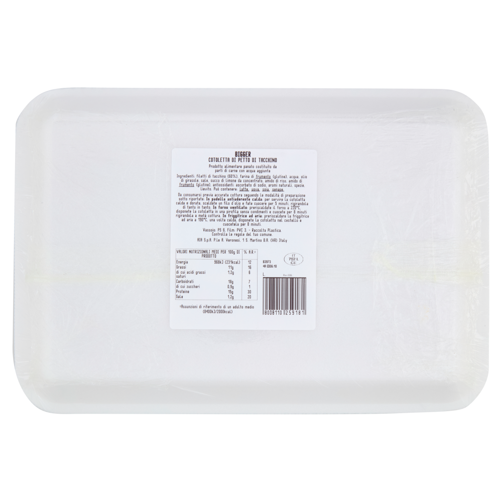 Bigger Cotoletta di petto di tacchino Prodotto alimentare panato costituito da parti di carne con acqua aggiunta