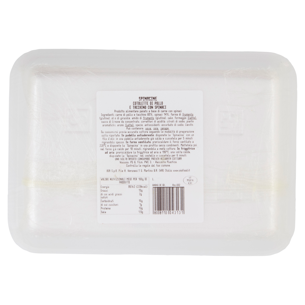 Aia Spinacine Originali Cotoletta di Pollo e Tacchino con Spinaci 0,300 kg