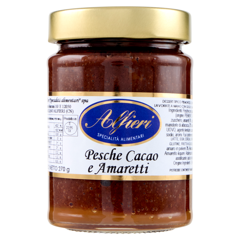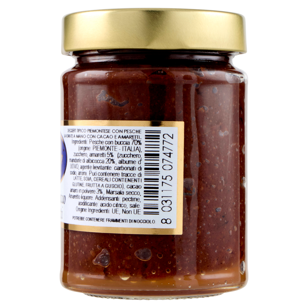 Dessert tipico piemontese con pesche lavorate a mano con cacao e amaretti