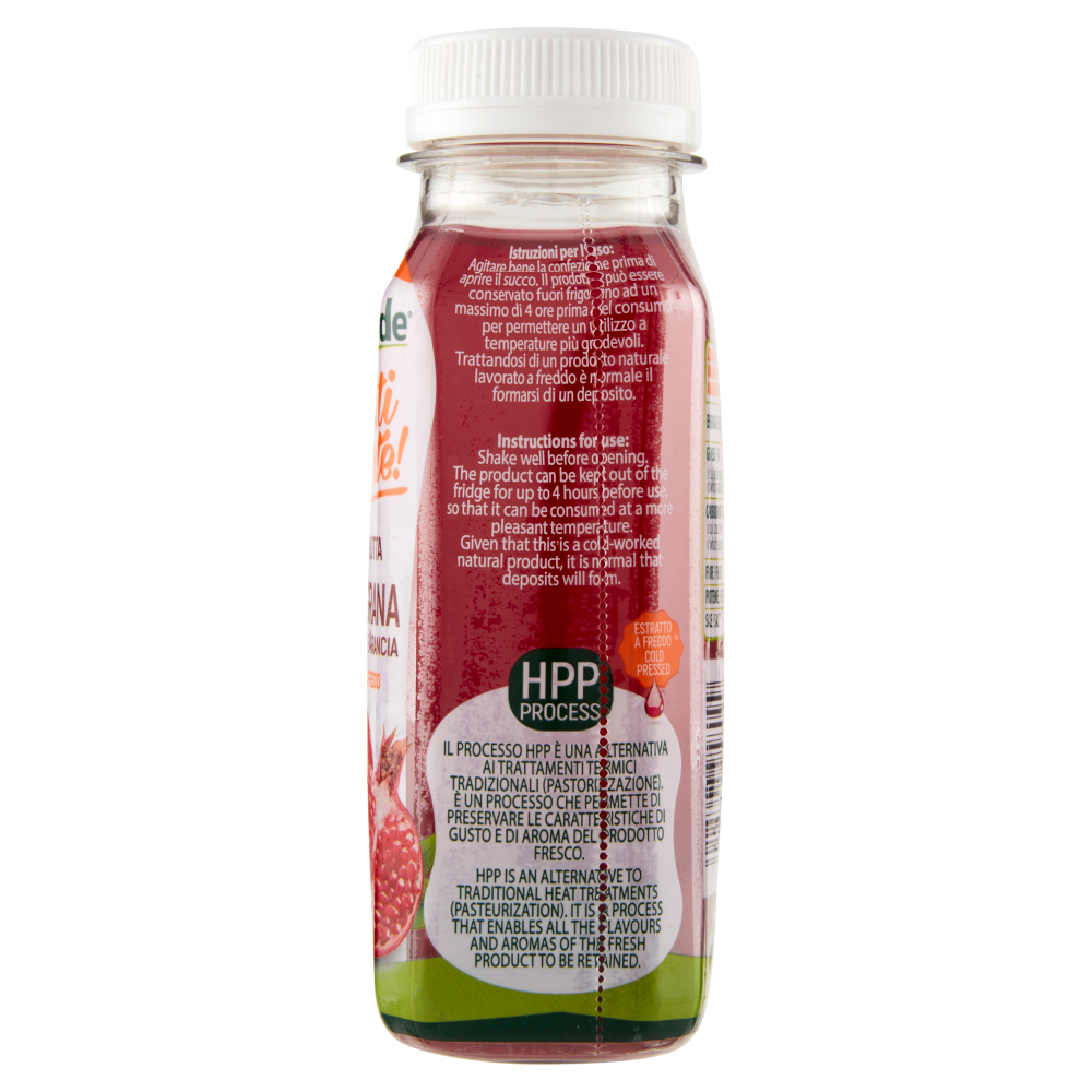 Istruzioni per l'uso: Agitare bene la confezione prima di aprire il succo. Il prodotto può essere conservato fuori frigo fino ad un massimo di 4 ore prima del consumo per permettere un utilizzo a temperature più gradevoli. Trattandosi di un prodotto naturale lavorato a freddo è normale il formarsi di un deposito.
