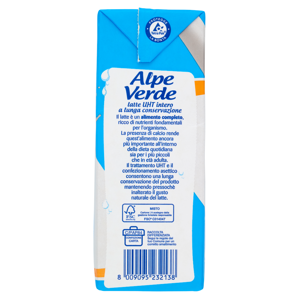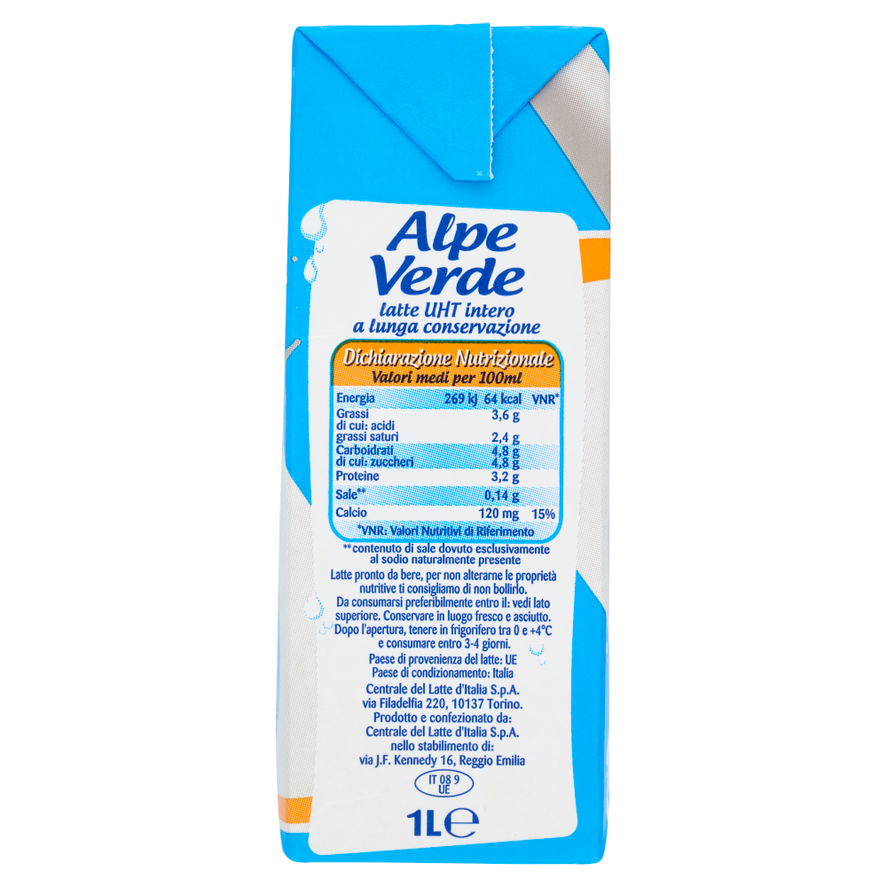 Il latte è un alimento completo, ricco di nutrienti fondamentali per l'organismo. La presenza di calcio rende quest'alimento ancora più importante all'interno della dieta quotidiana sia per i più piccoli che in età adulta. Il trattamento UHT e il confezionamento estetico consentono una lunga conservazione del prodotto mantenendo pressoché inalterato il gusto naturale del latte.
