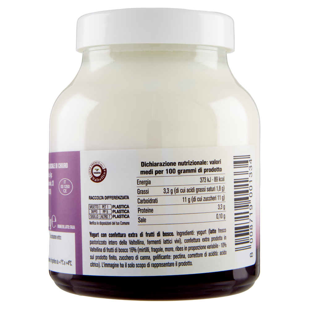AlpiYò Yogurt di Valtellina Intero con confettura extra di Frutti di Bosco 500 g