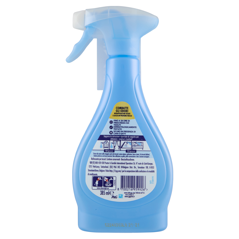 Combatte gli odori intrappolati nei tessuti e lascia un profumo fresco - Fino a 24 ore di freschezza sui tessuti - Dermatologicamente testato - Sicuro in presenza di cani e gatti