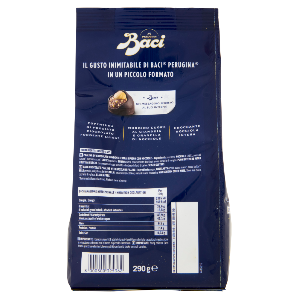 BACI PERUGINA Bacetti Cioccolatini Fondenti ripieni al Gianduia Sacchetto 290g