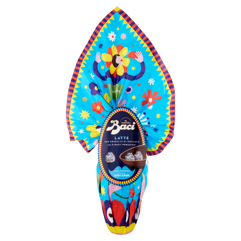 BACI PERUGINA Uovo Pasqua Cioccolato al Latte e granella nocciole con Sorpresa e 3 Cioccolatini 380g