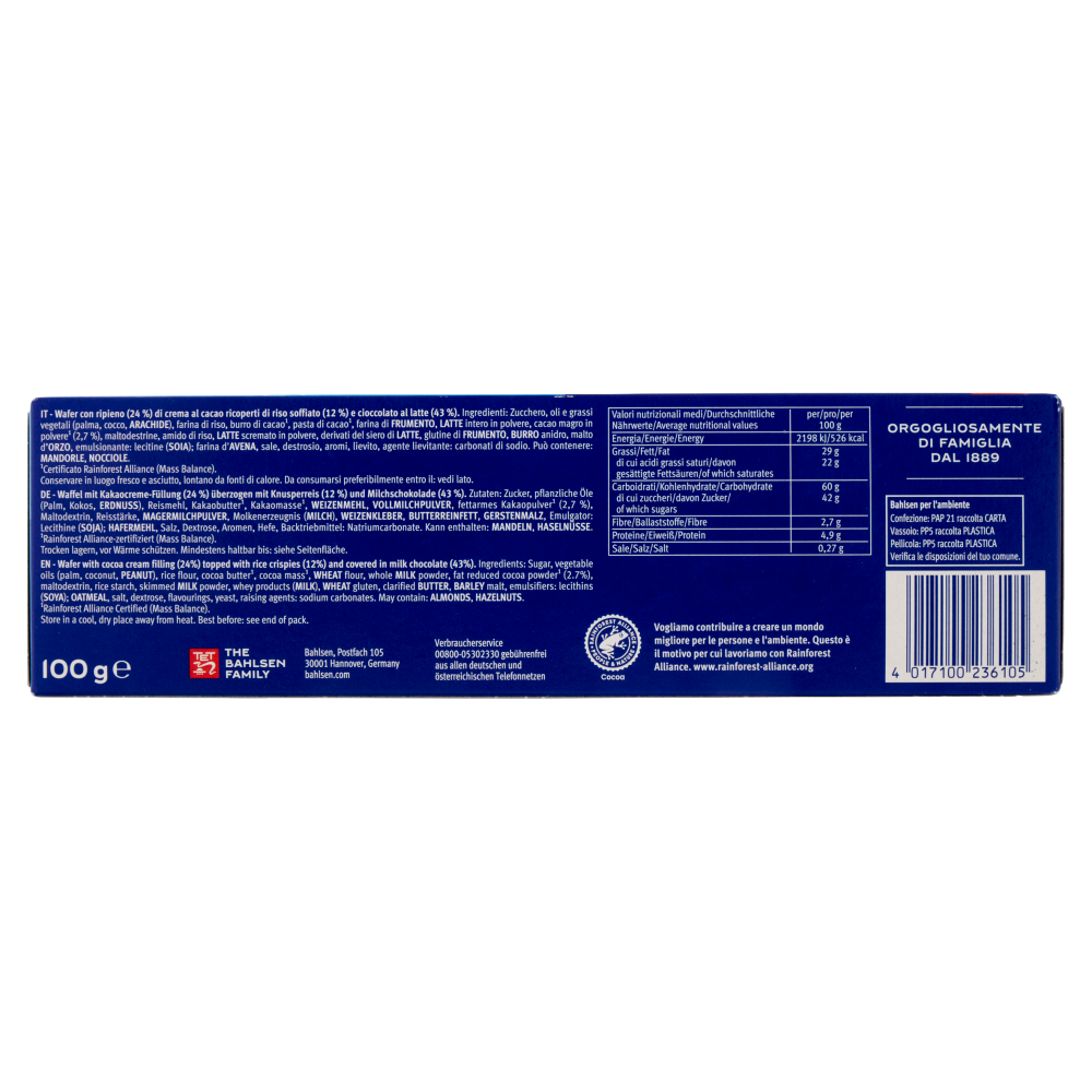 Bahlsen per l'ambiente Confezione: PAP 21 - raccolta carta Vassoio: PP5 - raccolta plastica Pellicola: PP5 - raccolta plastica Verifica le disposizioni del tuo comune