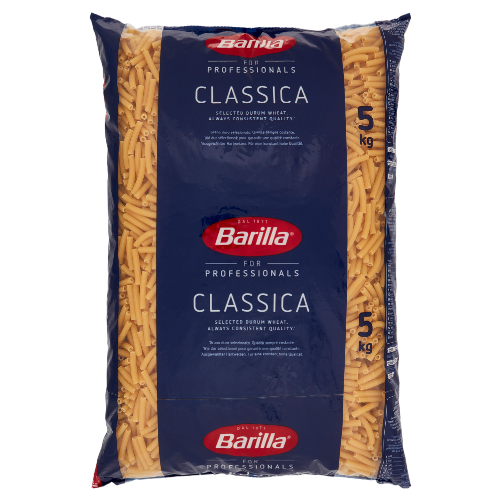 Barilla Classica è la base perfetta per tutte le ricette: una pasta di qualità versatile e deliziosa che mantiene la cottura al dente. Nata da una selezione di grani duri e plasmata con trafile al teflon per assicurarne la consistenza in ogni piatto servito. Studiata da professionisti per i professionisti. Disponibile in un'ampia gamma di formati tradizionali e di consumo quotidiano.