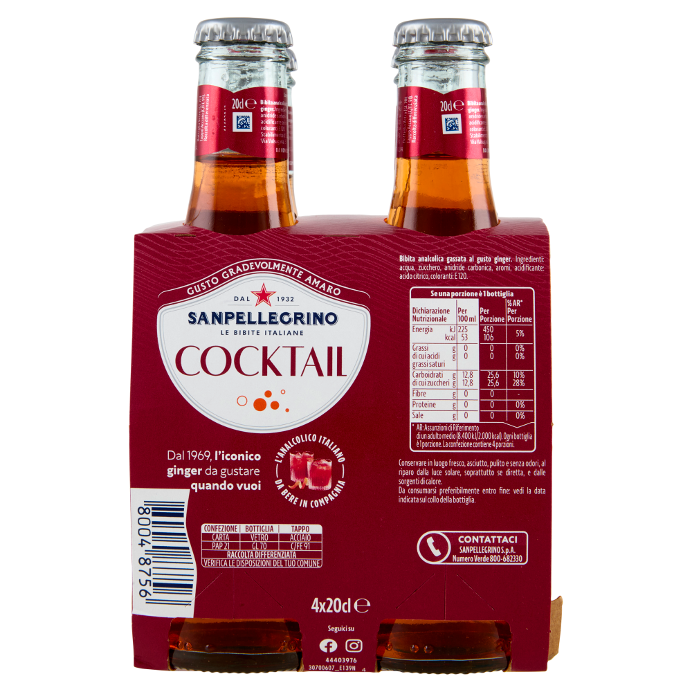 BIBITE SANPELLEGRINO, Bevande Gassate, Cocktail, Vetro 20 cl x 4