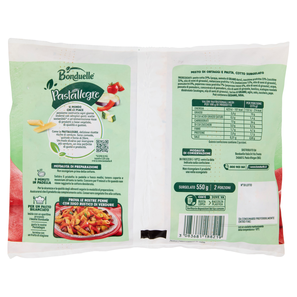 Bonduelle Pastallegre Penne con Sugo Rustico di Verdure Surgelato 550 g