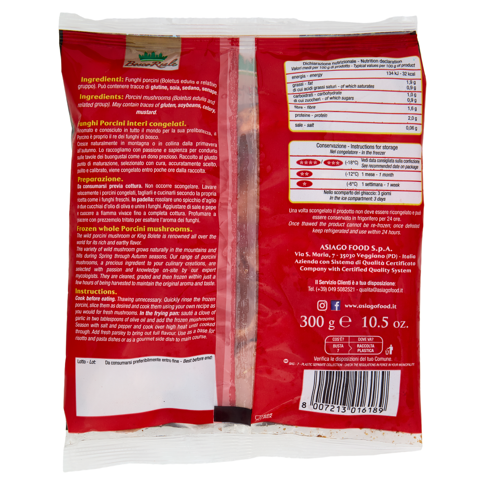 Bosco Reale Funghi Porcini Interi Congelati 300 g
