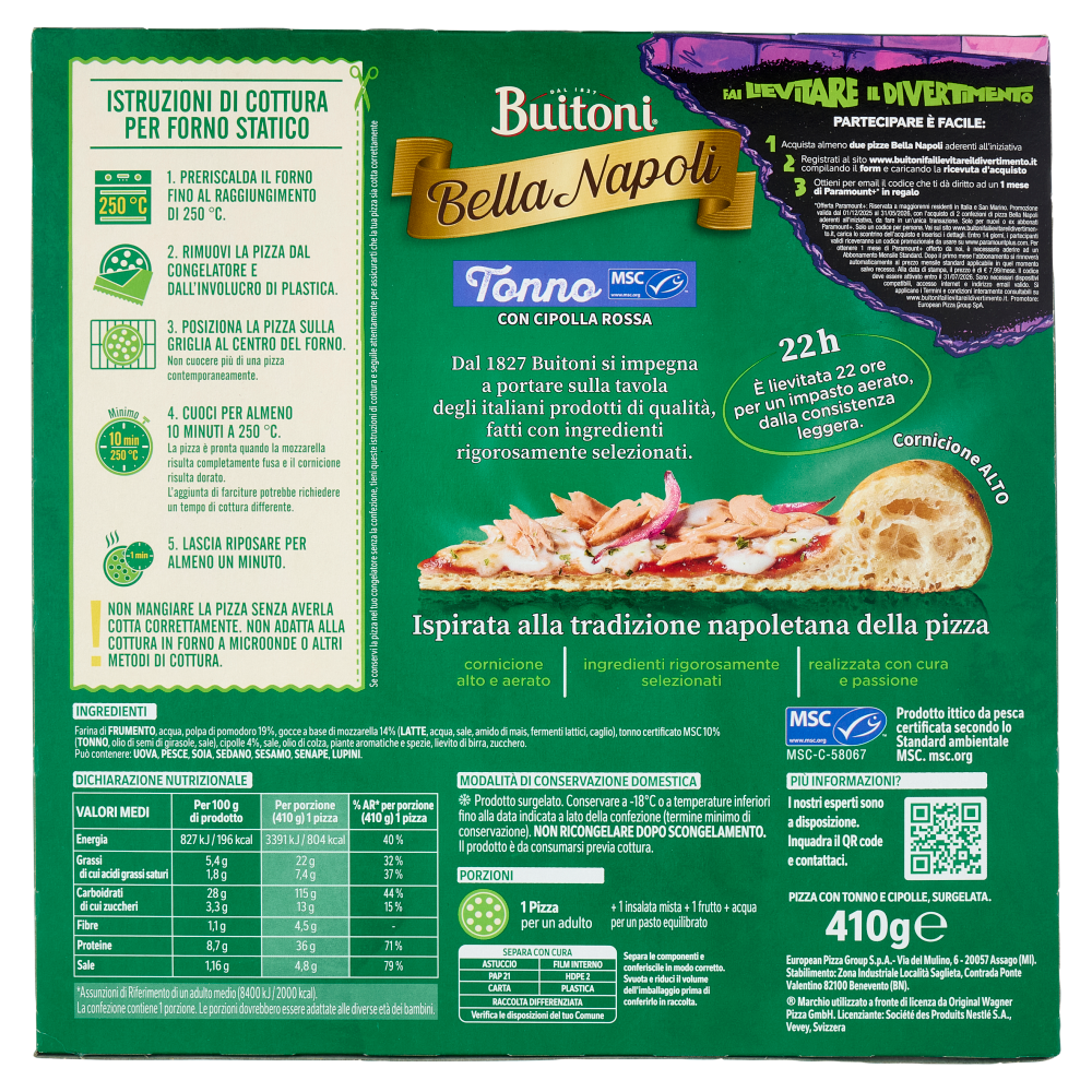 Buitoni Bella Napoli Tonno Pizza surgelata 410g