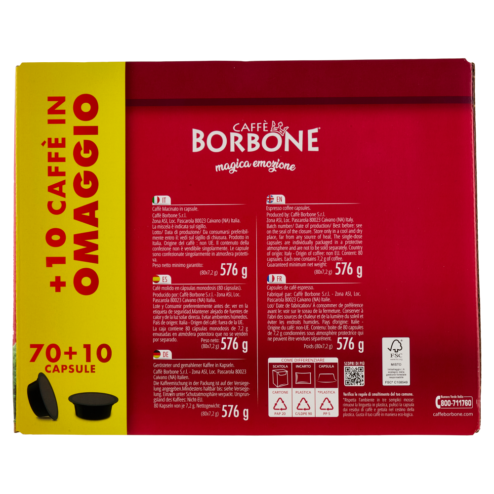 Numero Verde Italia 800-711760 caffeborbone.com Caffè Borbone S.r.l. Zona ASI, Loc. Pascarola 80023 Caivano (NA) Italia