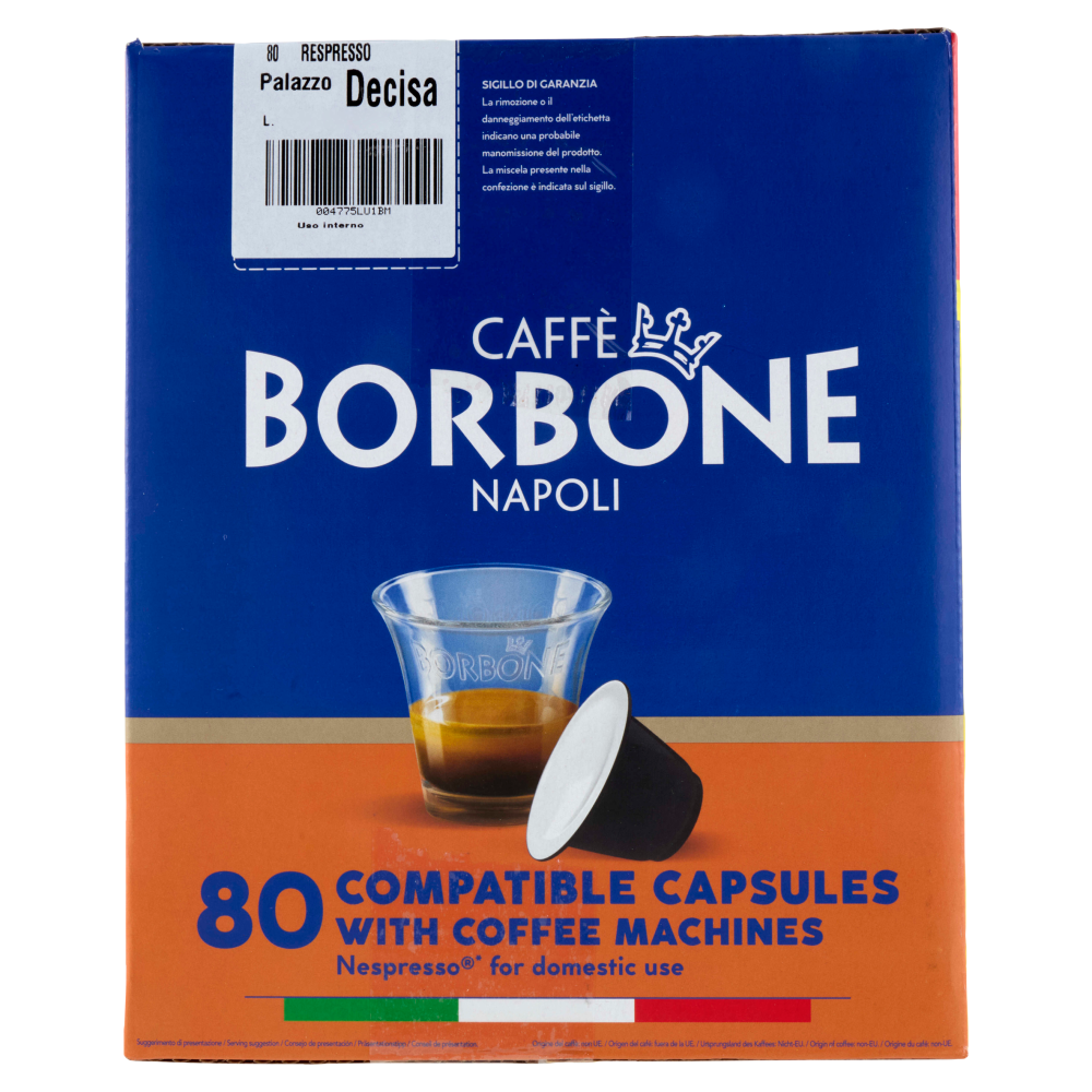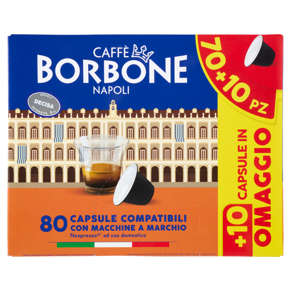 *Nespresso è un marchio registrato di Societè des Produits Nestlè S.A. Caffè Borbone Srl è produttore autonomo con collegato alla Societè des Produits Nestlè S.A. La compatibilità delle capsule Caffè Borbone è funzionale all'utilizzo con macchine da caffè ad uso domestico Nespresso. Il contenuto della confezione non è vendibile singolarmente.
