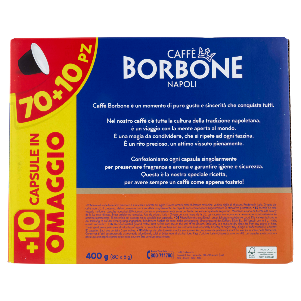 Numero Verde Italia 800-711760 Caffè Borbone S.r.l. Zona ASI, Loc. Pascarola 80023 Caivano (NA) Italia