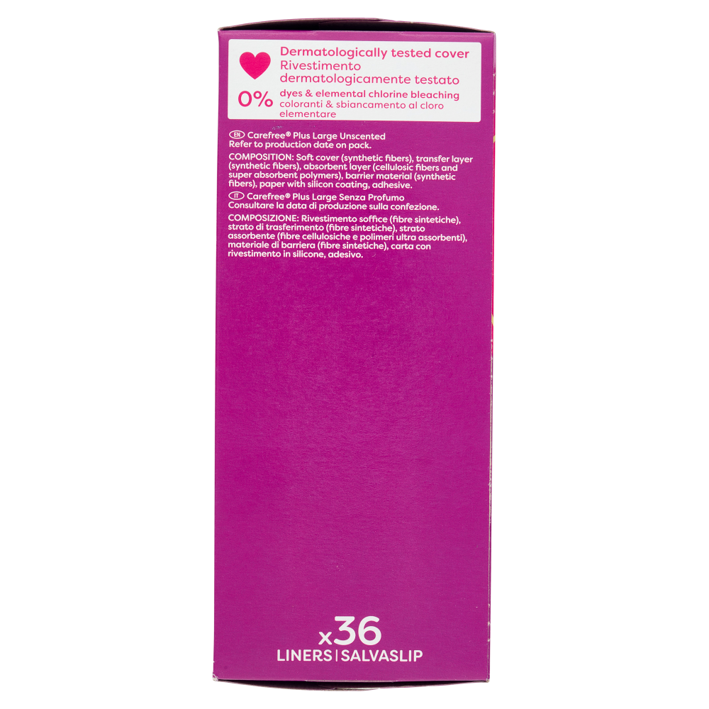 Carefree Plus Large Senza Profumo Consultare la data di produzione sulla confezione. Non tutti i prodotti sono disponibili in tutti i paesi.