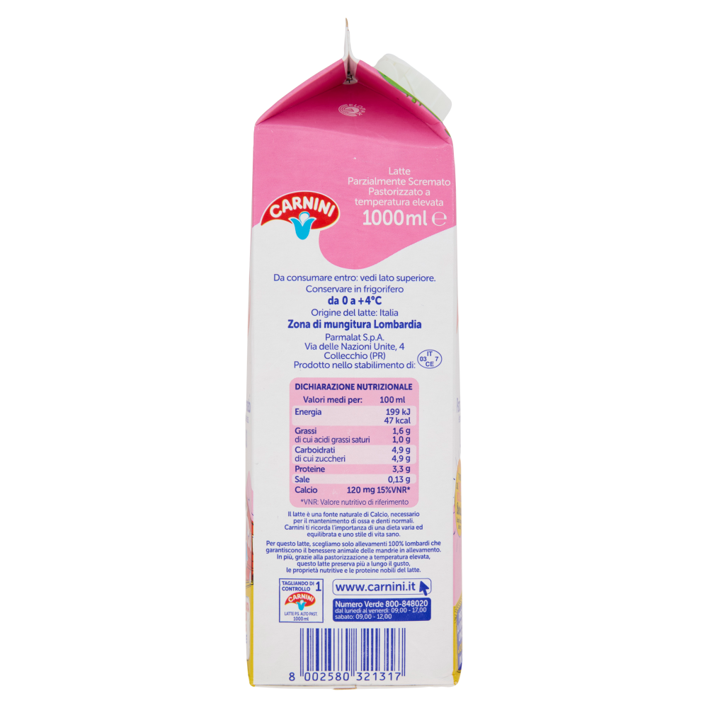 Carnini Latte Parzialmente Scremato Pastorizzato a temperatura elevata Lombardo 1000 ml