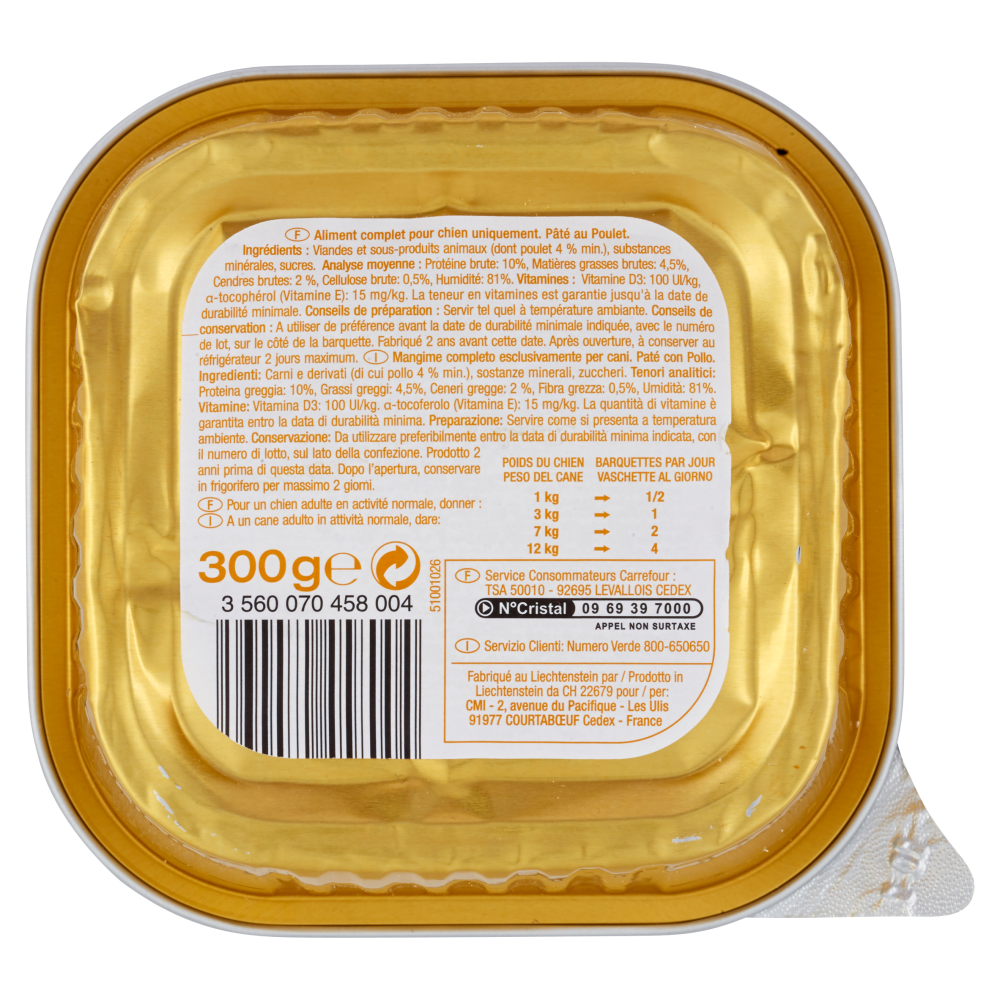 Carrefour Discount Vaschetta con pollo per cani 300 g