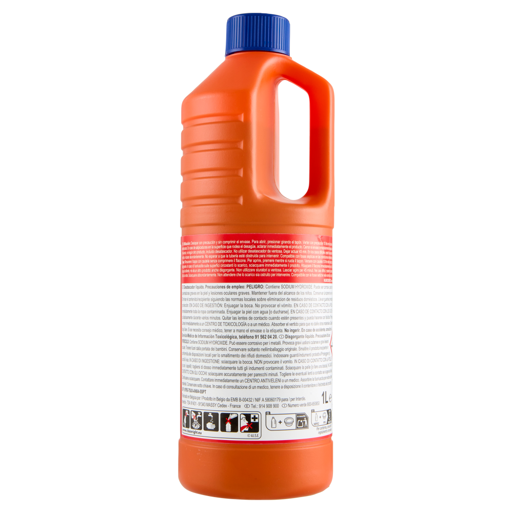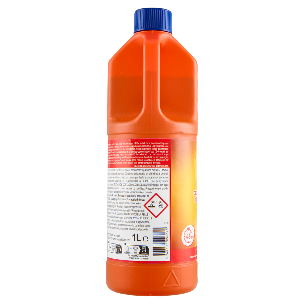 Consigli per l'uso: Rimuovere il tappo con cautela senza comprimere il flacone. Per aprire, premere mentre si ruota il tappo. Versare con cautela 1/2 litro nello scarico, anche in caso di acqua stagnante. In caso di fuoriuscite sulle superfici circostanti lo scarico, sciacquare immediatamente il prodotto. Ritappare il flacone immediatamente dopo l'utilizzo. Non aggiungere acqua bollente, né alcun altro prodotto anche disgorgante. Non utilizzare sturatori a ventosa. Lasciar agire per 45 minuti. Nei casi difficili, ripetere l'operazione e lasciar agire per tutta la notte. Sciacquare abbondantemente. Non attendere che lo scarico sia ostruito per intervenire. Compatibile con le fosse settiche nelle normali condizioni di utilizzo.