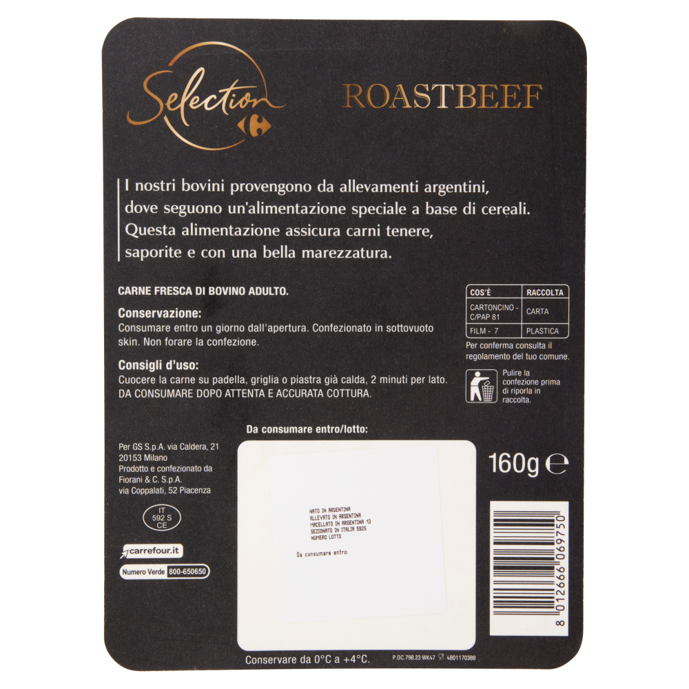 Bollo CE IT 592 S CE Origine Altro Testo Carne Origine Argentina | Nato in Argentina | Allevato in Argentina | Macellato in Argentina 13 | Sezionato in Italia 592S