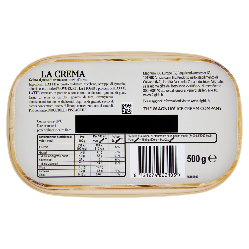 Magnum ICC Europe BV Reguliersdwarsstraat 63 1017BK Amsterdam, NL Prodotto nello stabilimento di Caivano (NA) località Pascarola Zona industriale ASI Italia se le ultime cifre del lotto sono <<008>>