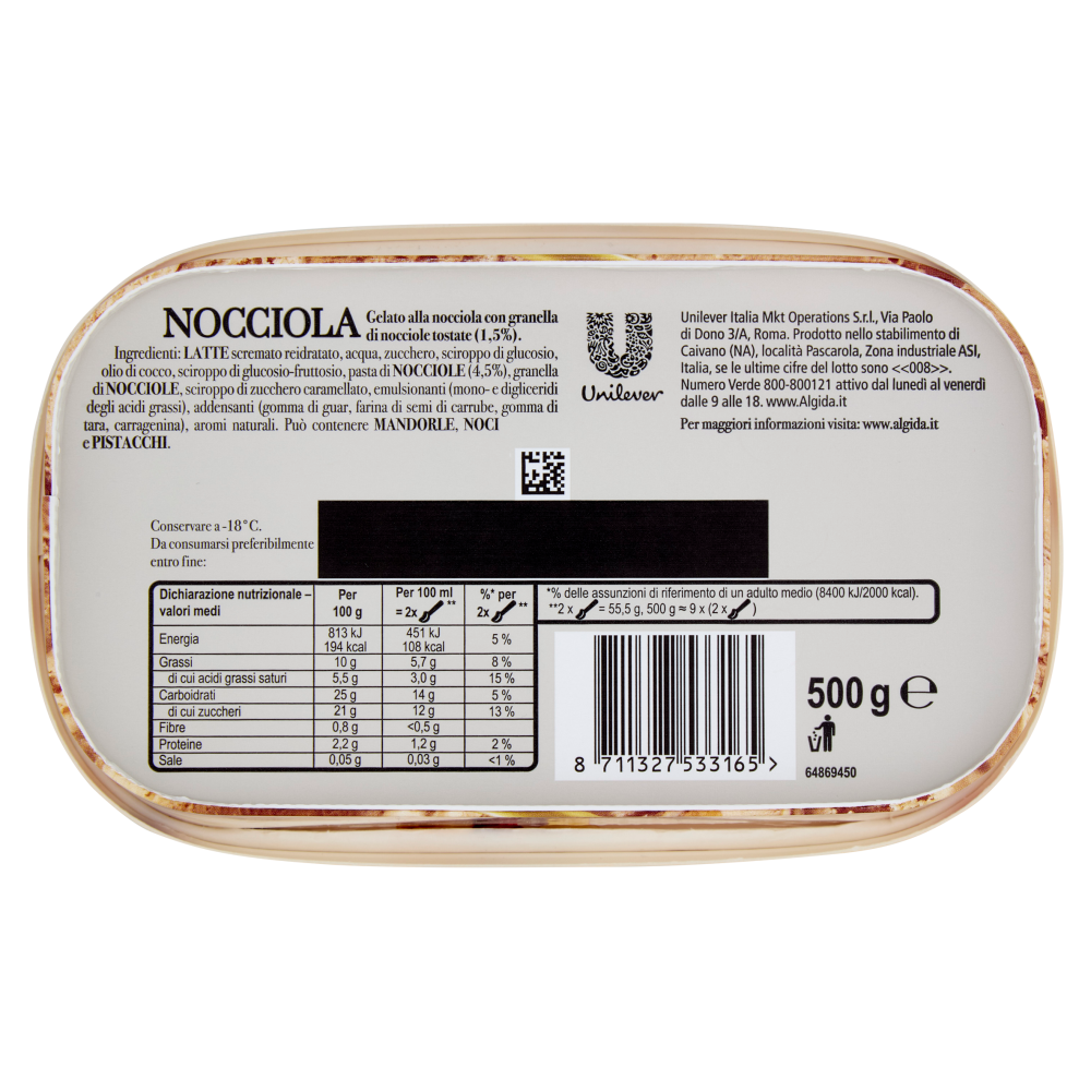 Gelato alla nocciola con granella di nocciole tostate (1,5%)