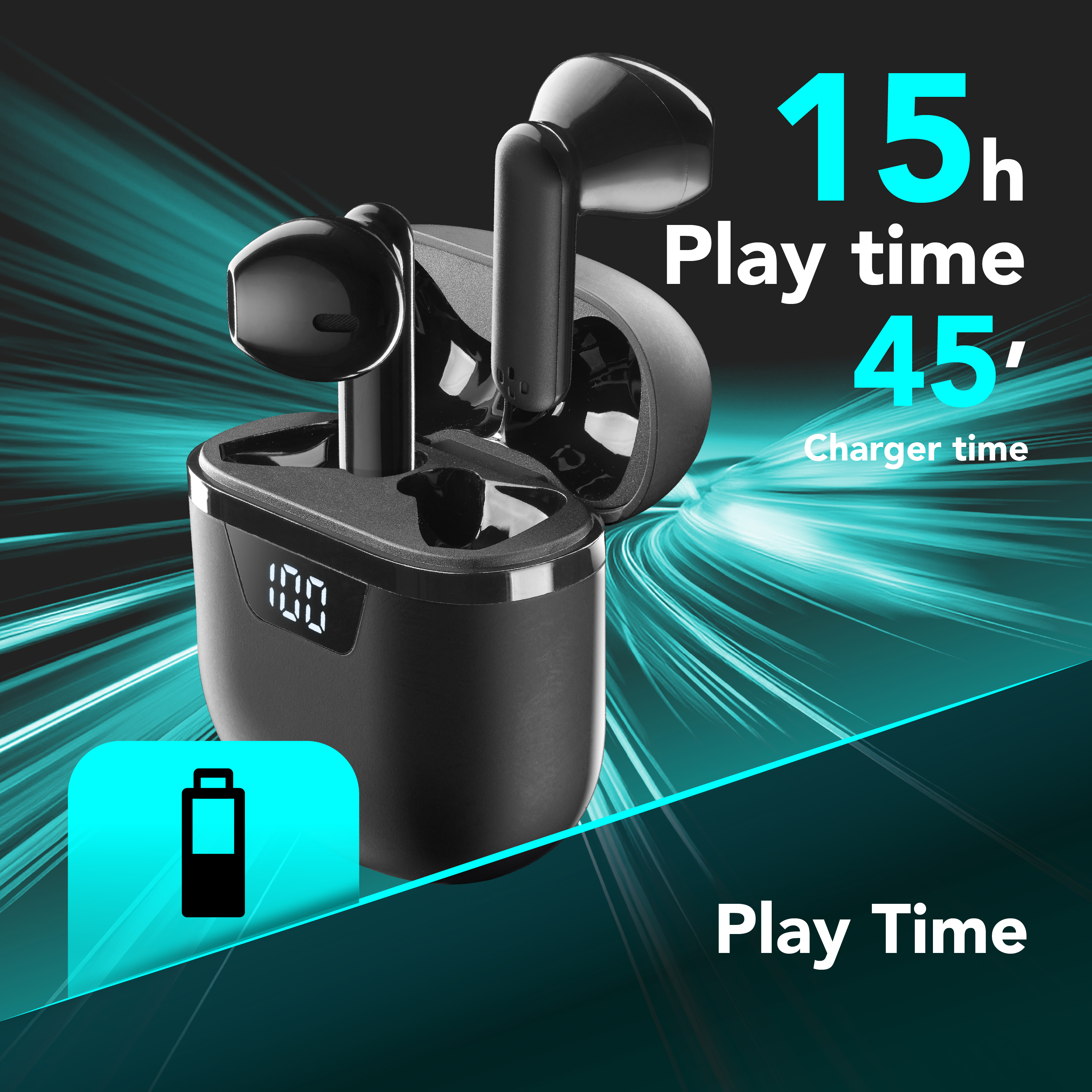 SEEK PRO è l'auricolare a capsula senza fili dal design piccolo e tascabile, dotato di custodia di ricarica. Grazie alla ricarica super veloce, SEEK PRO riesce a ricaricarsi completamente in 45 minuti. Il display LED riporta la percentuale di carica della custodia, per sapere quando è necessario ricaricare la case (tramite cavo USB-C incluso). Chiamate, musica e volume sono gestiti direttamente dagli auricolari, tramite i controlli touch.