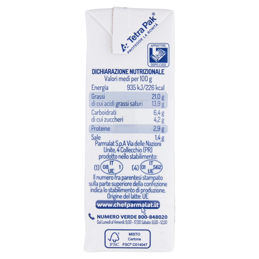 Numero Verde 800-848020 dal Lunedì al Venerdì: 9,00 - 17,00 Sabato: 9,00 - 12,00 Parmalat S.p.A Via delle Nazioni Unite, 4 Collecchio (PR) www.chefparmalat.it