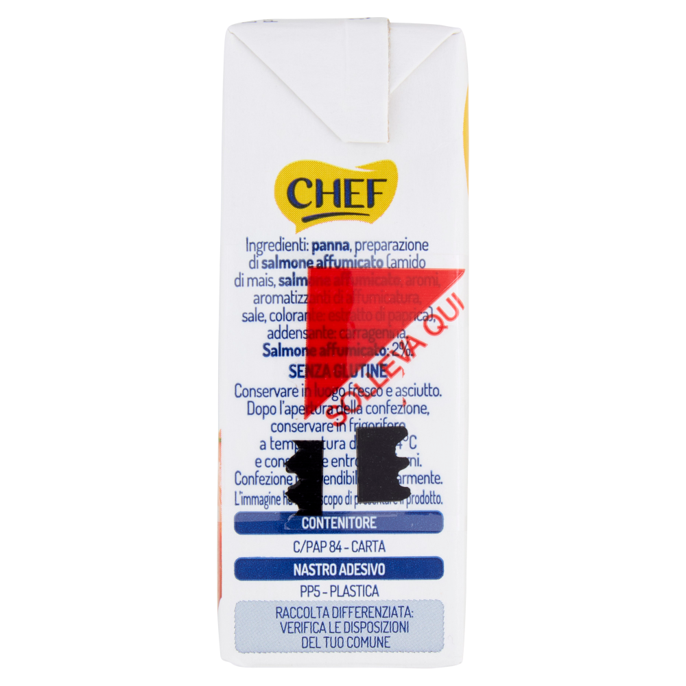 Delicata e cremosa con il gusto unico del salmone affumicato, Panna Chef è perfetta per dare carattere alle tue ricette. La più buona che Chef! Senza Conservanti a norma di legge con Salmone Affumicato