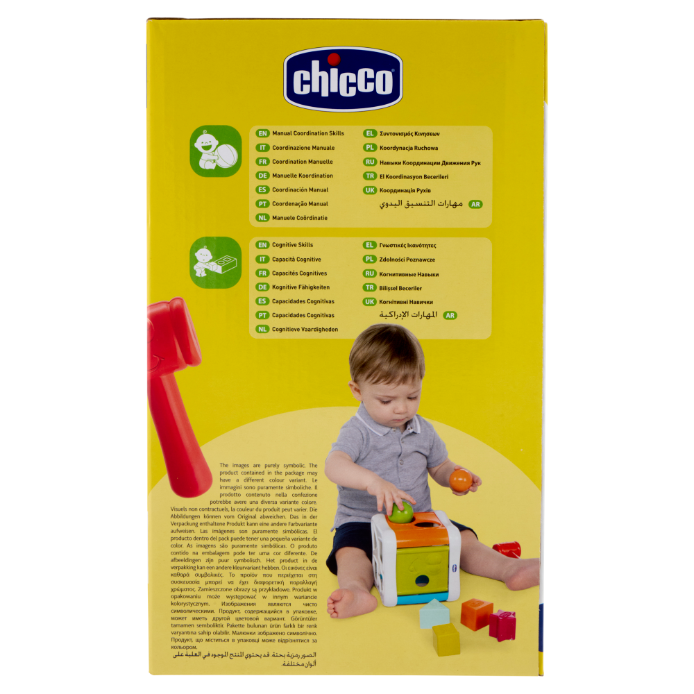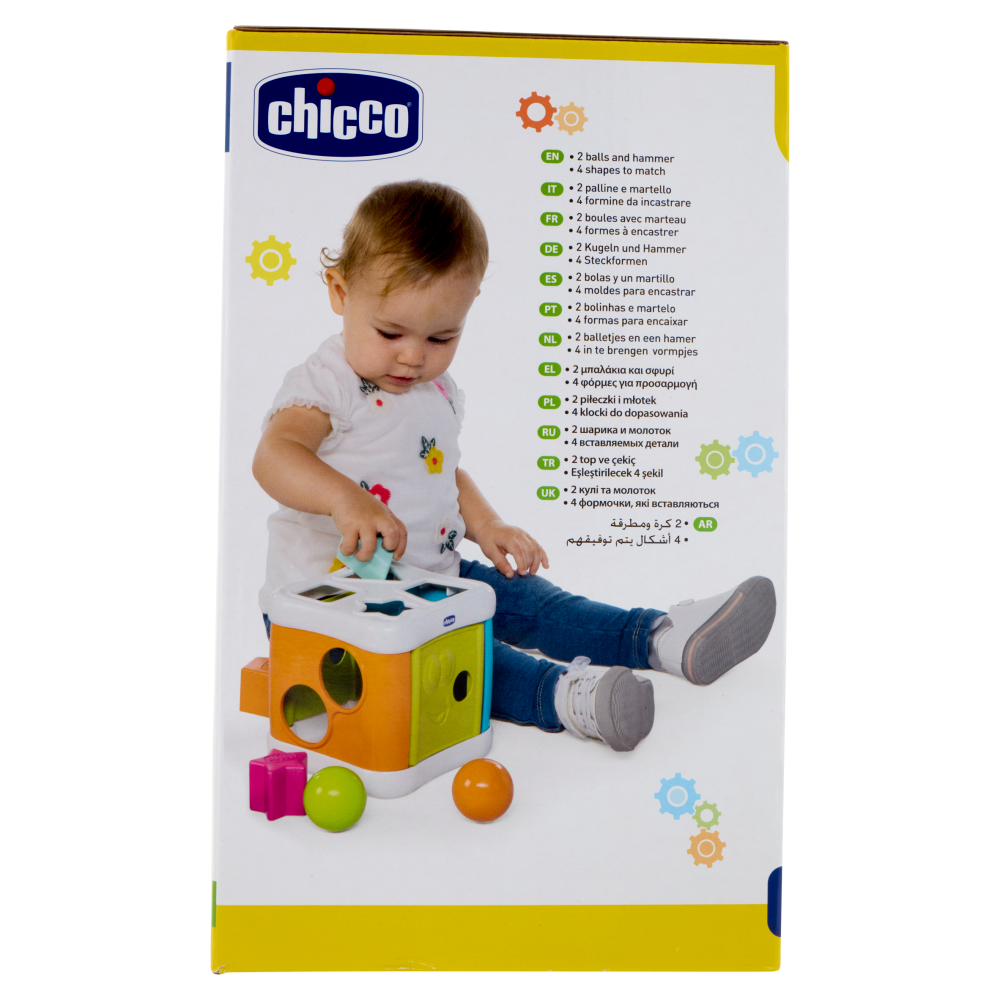 Due funzionalità di gioco e tante forme colorate: il cubo Incastra e Martella di Chicco accompagna il tuo bimbo nell'esercizio delle abilità cognitive primarie.4 forme geometriche colorate da incastrare su due lati, 2 palline e 1 martello. Permette di esercitare la coordinazione mano-occhio. Attività apri e chiudi per far uscire le palline.
