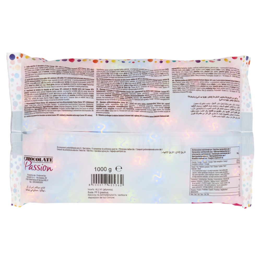 Praline assortite di cioccolato al latte (cacao: 30% min.) e cioccolato fondente extra (cacao: 50% min.)