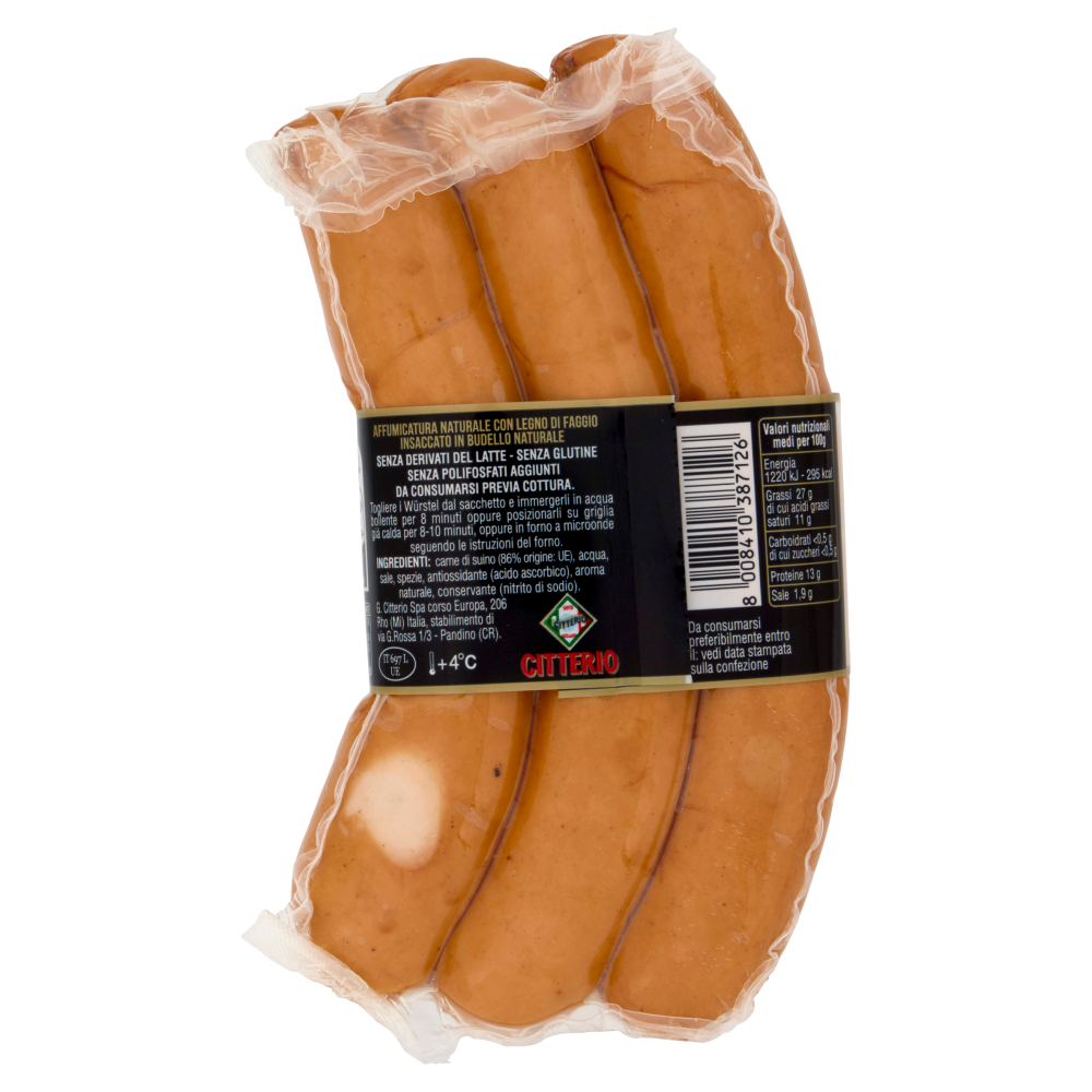 Senza glutineAffumicatura naturale con legno di faggio insaccato in budello naturale Senza derivati del latte - Senza glutine Senza polifosfati aggiunti