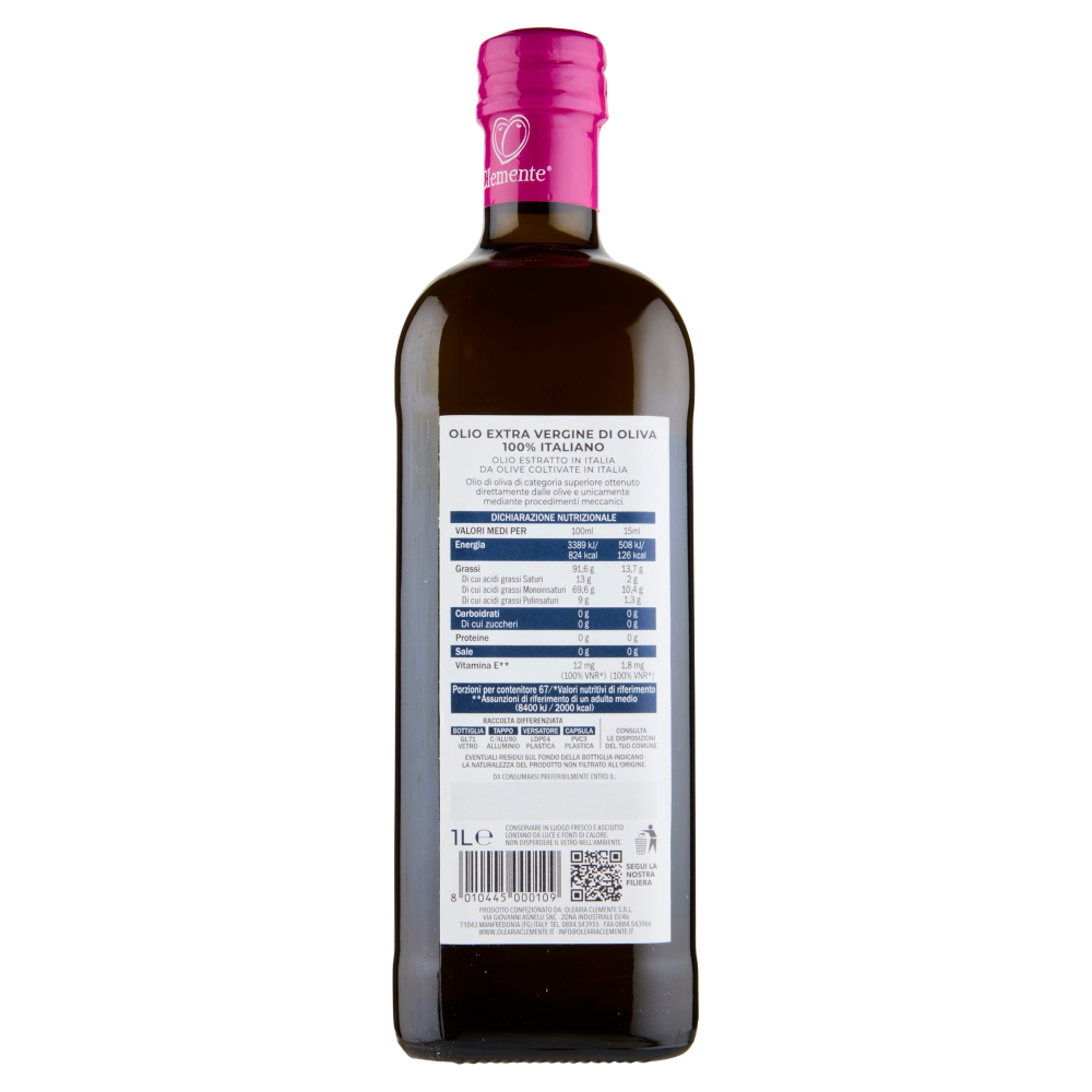 Prodotto confezionato da: Olearia Clemente S.r.l. Via Giovanni Agnelli snc Zona Industriale DI/46 71043 Manfredonia (FG) Italy