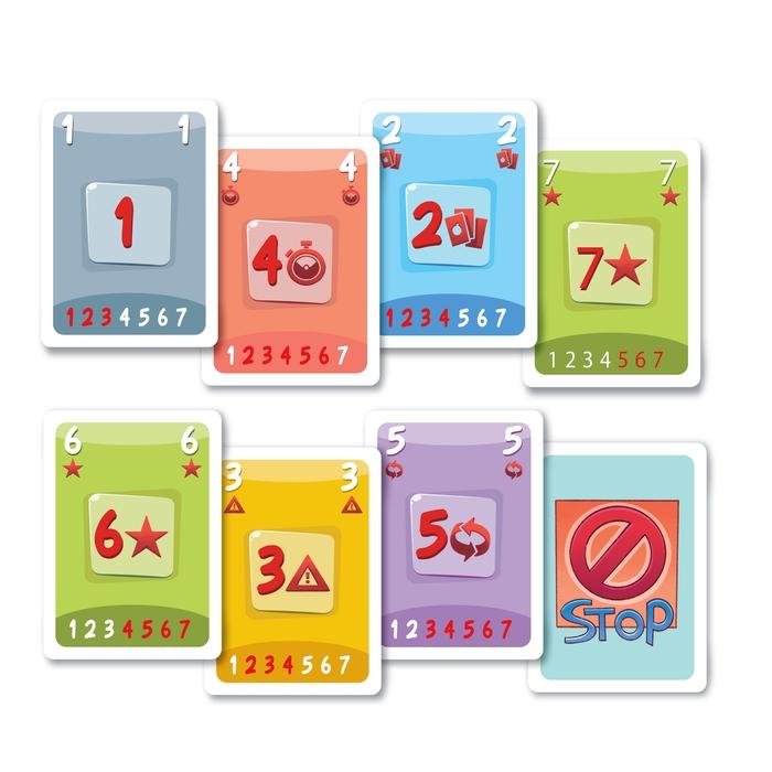 Il mazziere distribuisce le carte ai giocatori e a turno ognuno scarta una carta con un numero vicino a quello indicato nella carta al centro del tavolo.
