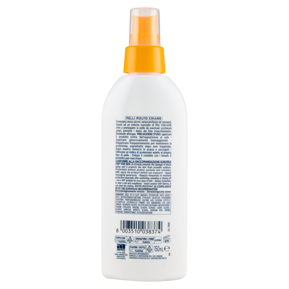 Pelli sensibili Precauzioni d'uso: applicare il prodotto prima dell'esposizione al sole - Applicare generosamente massaggiando - Riapplicare frequentemente per mantenere la protezione, soprattutto dopo aver traspirato, dopo essersi immersi in acqua e asciugati - Utilizzare un indice di protezione adatto al proprio tipo di pelle - Evitare il contatto con i tessuti, il prodotto può macchiare.