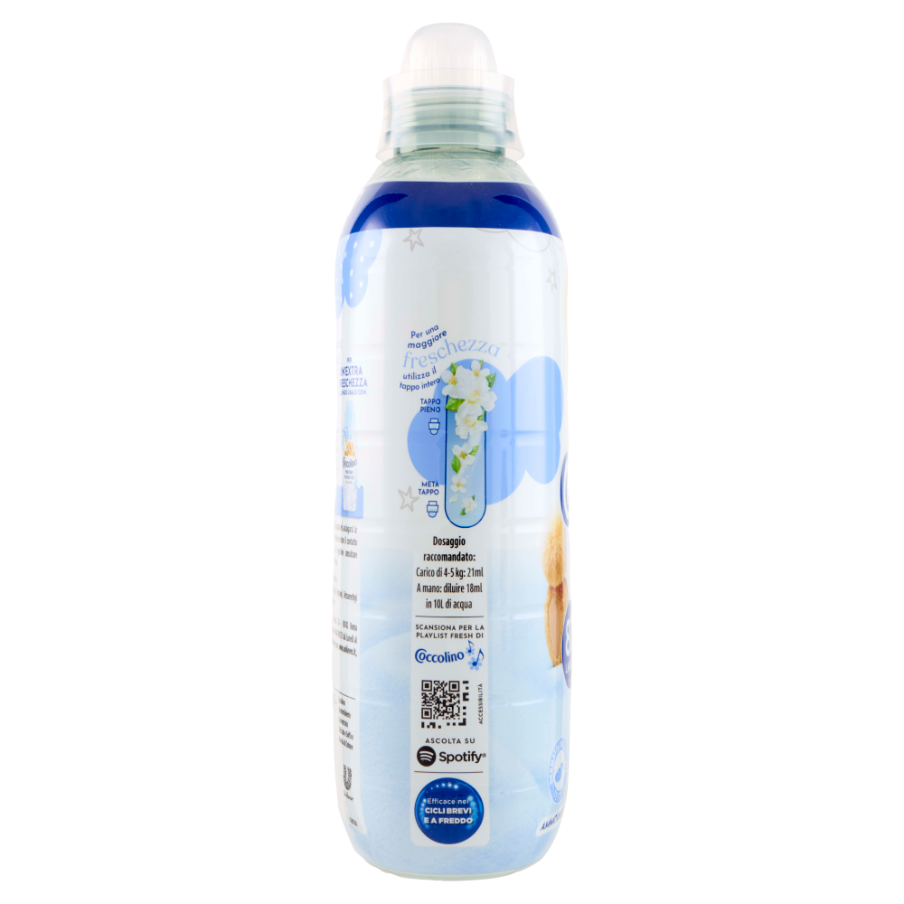 Formula dermatologicamente testata e fragranza delicata, ideale sui capi di tutta la famiglia Coccolino Delicato & Soffice è accuratamente pensato per donare ai tuoi capi una delicata freschezza e una morbidezza tutta da abbracciare Per un'extra freschezza a lungo usalo con: Coccolino Profumo per Bucato Elixir Bottiglia 100% riciclabile (esclusa etichetta) Efficace nei Cicli Brevi e a Freddo
