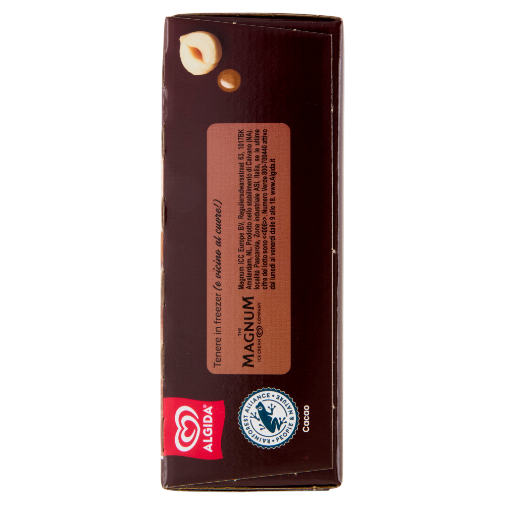 Gelato alla nocciola e gelato al cioccolato, con cialda (14%), copertura al cacao magro (7%), salsa alla nocciola salata (15%), con uno strato di copertura alla nocciola e cacao (15%) e granella di nocciola caramellata (1%) (2% di cioccolato fondente nel gelato al cioccolato)