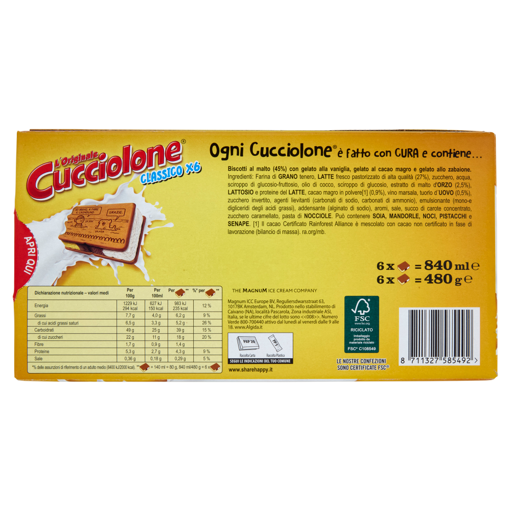 *% delle assunzioni di riferimento di un adulto medio (8400 kJ/2000 kcal) **biscotto = 140 ml = 80 g, 840 ml/480 g = 6 x biscotto