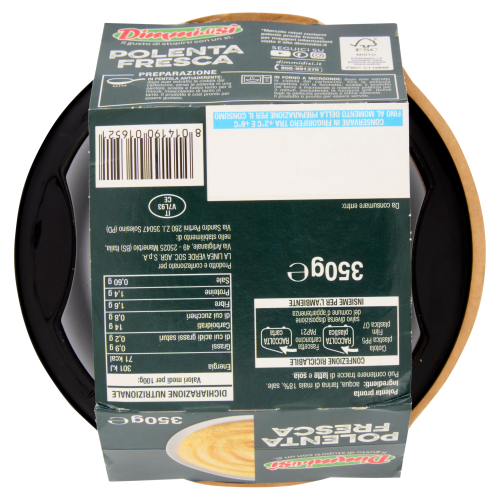 Preparazione In pentola antiaderente: dopo aver estratto la ciotola dal cartoncino, versa la polenta in una pentola, scalda a fuoco lento per 6 minuti, mescolando di tanto in tanto. Il prodotto è così pronto per essere gustato. In forno a microonde: dopo aver estratto la ciotola dal cartoncino, fora la pellicola protettiva con la forchetta, scalda il prodotto nel forno a microonde a massima potenza per 3 minuti, escludendo la funzione grill. Quindi togli la pellicola protettiva e infine mescola. Il prodotto è pronto per essere servito.