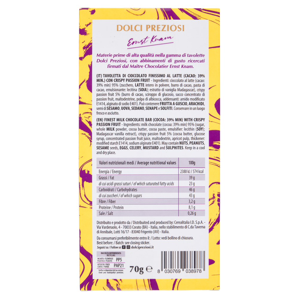 Dolci Preziosi Ernst Knam Tavoletta Cioccolato al Latte con Crispy Passion Fruit 70g