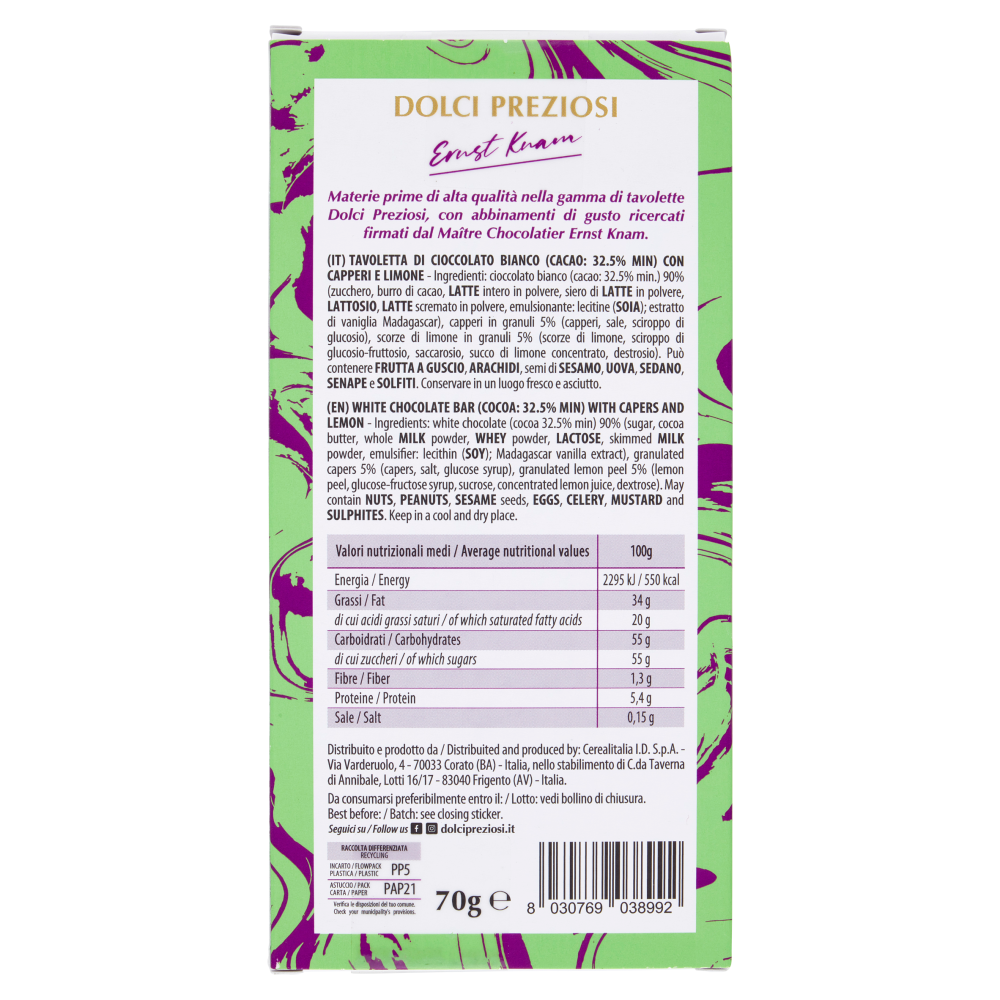 Dolci Preziosi Ernst Knam Tavoletta Cioccolato Bianco con Limone e Capperi 70g