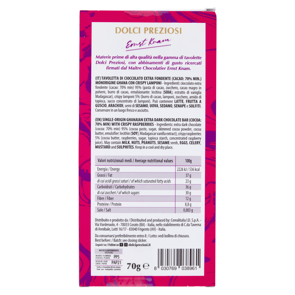 Dolci Preziosi Ernst Knam Tavoletta Cioccolato Fondente 70% con Crispy Lamponi 70g