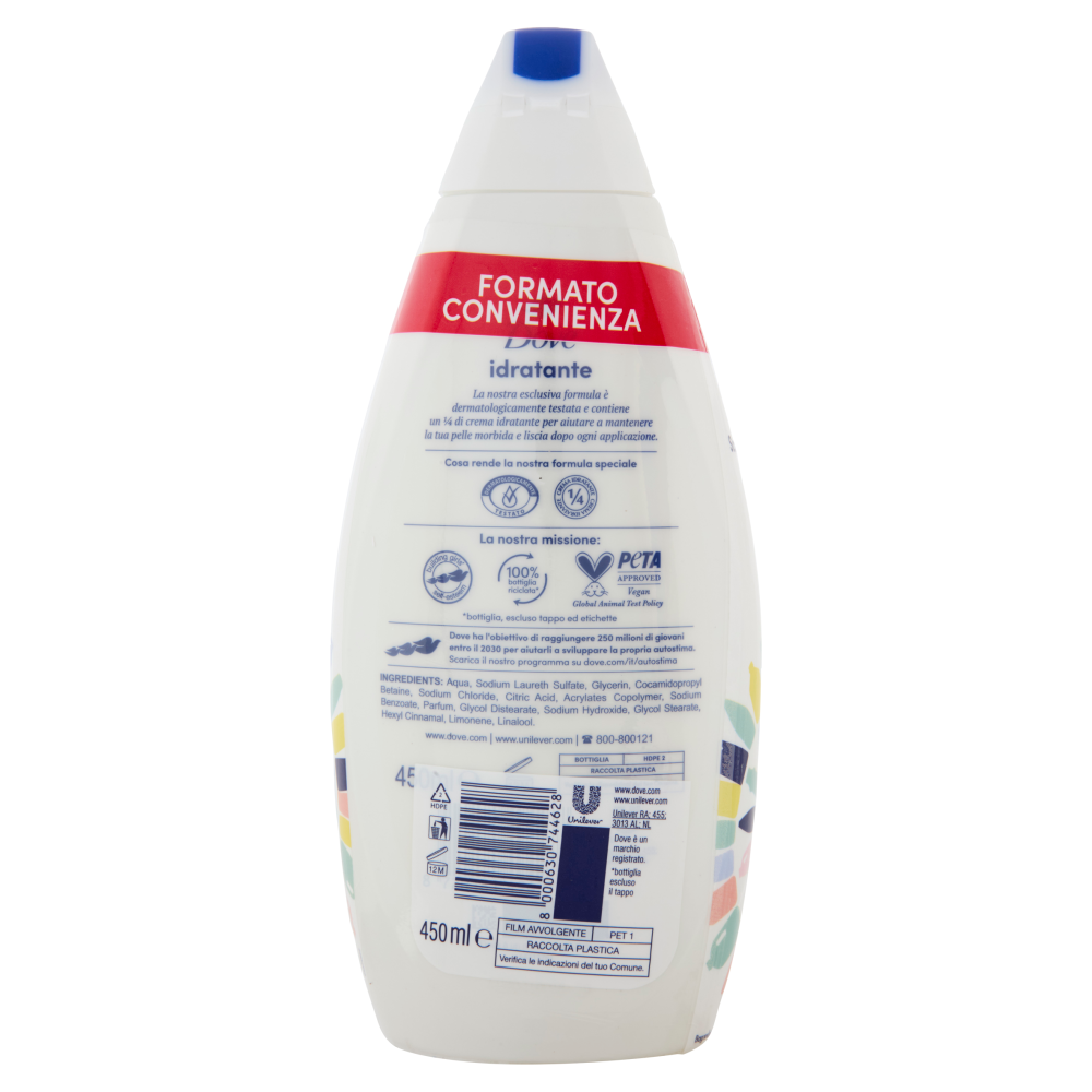 PeTA Approved - Vegan - Global Animal Test Policy Maggiori Informazioni al sito www.dove.com 100% bottiglia riciclata* *bottiglia, escluso tappo ed etichette La nostra missione: building girls' - self-esteem Dove ha l'obiettivo di raggiungere 250 milioni di giovani entro il 2030 per aiutarli a sviluppare la propria autostima. Scarica il nostro programma su dove.com/it/autostima