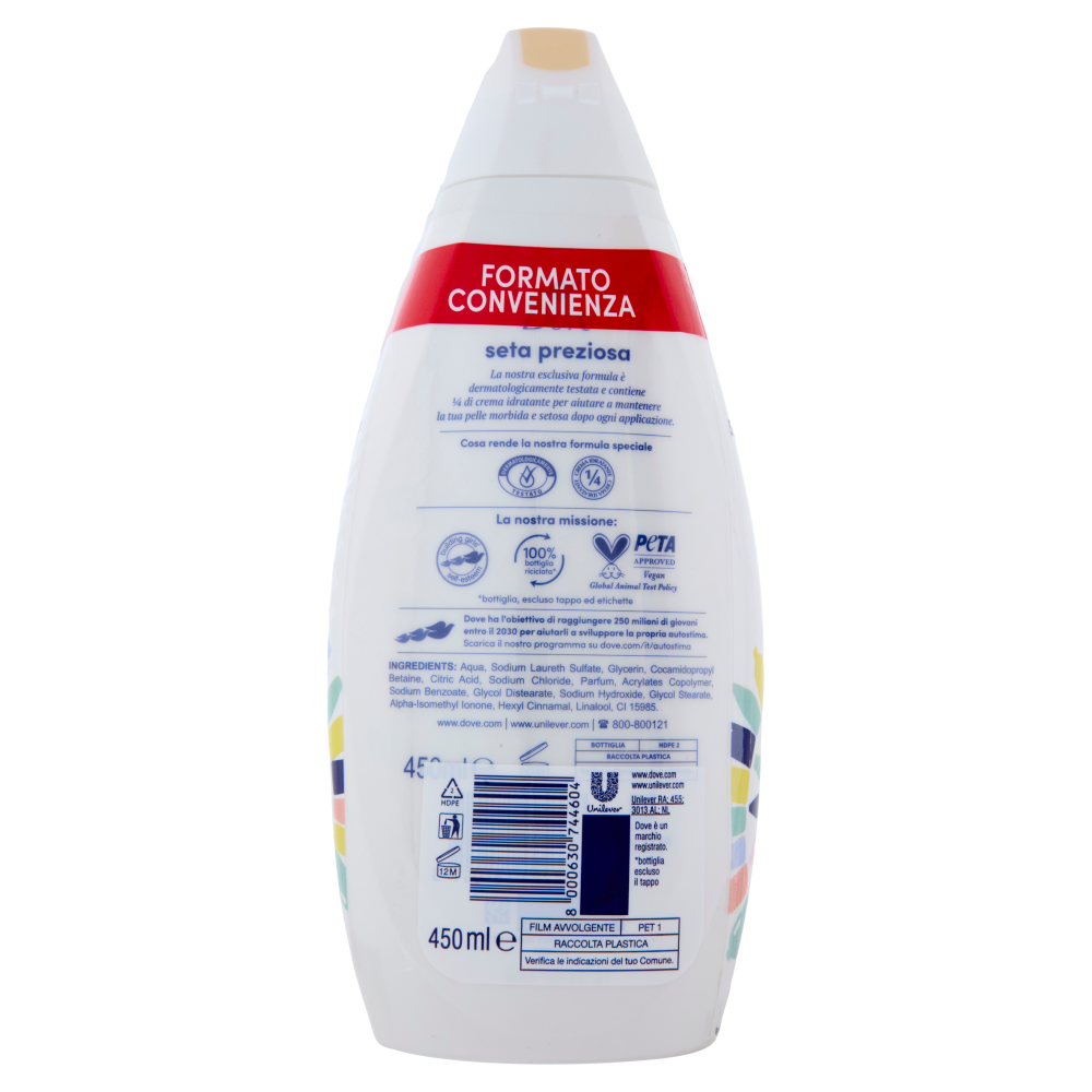 PeTA Approved - Vegan - Global Animal Test Policy Maggiori Informazioni al sito www.dove.com 100% bottiglia riciclata* *bottiglia, escluso tappo ed etichette La nostra missione: building girls' - self-esteem Dove ha l'obiettivo di raggiungere 250 milioni di giovani entro il 2030 per aiutarli a sviluppare la propria autostima. Scarica il nostro programma su dove.com/it/autostima
