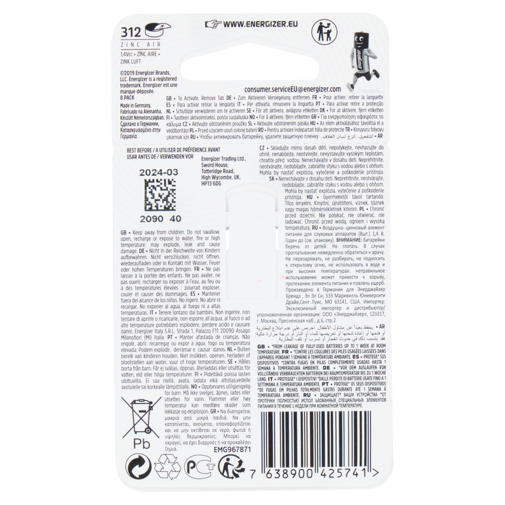 Energizer Ez Turn & Lock 312 8 pz