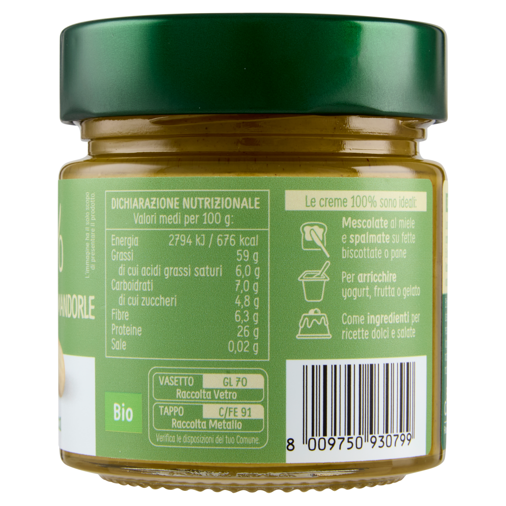 Solo frutta secca: ecco la prova! La separazione della parte oleosa è un comportamento perfettamente naturale. È la prova che non aggiungiamo altro. Basterà mescolare con cura fino al fondo del vasetto per ottenere una crema morbida e setosa. Le creme 100% sono ideali: Mescolate al miele e spalmate su fette biscottate o pane Per arricchire yogurt, frutta o gelato Come ingredienti per ricette dolci e salate