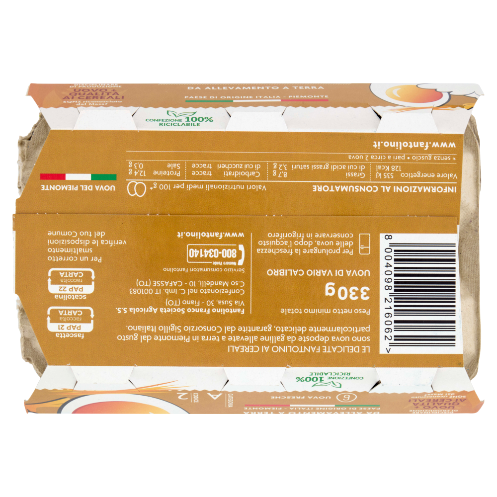 Le delicate Fantolino ai cereali sono uova deposte da galline allevate a terra in Piemonte dal gusto particolarmente delicato, garantite dal Consorzio Sigillo Italiano. Uova del Piemonte